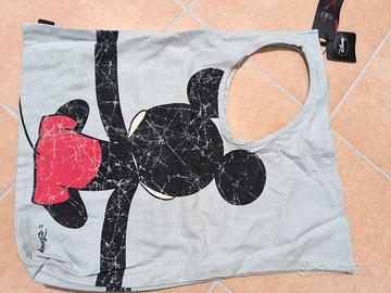 Borsa Disney Topolino, colore grigio perla, stampa ad entrambi i lati. Nuova, ancora con cartellino.