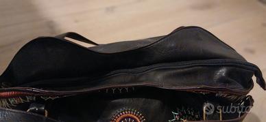 Colore marrone castoro Vera pelle Borsa a tracolla e a mano ha due manici piccoli e una tracolla.