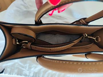 Vendo borsa ricevuta in regalo per non utilizzo borsa in pelle con manici e tracolla color cammello dimensioni H24xL34xP9 in pelle Nuova mai