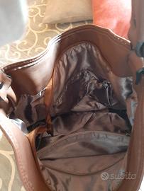 Borsa da donna da portare a spalla, di color marrone intenso, mai utilizzata.