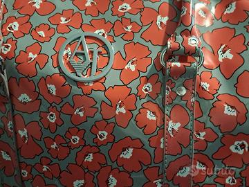 Borsa bauletto Armani Jeans in poliuretano. Nuova, mai usata, senza cartellino. Sfondo grigio piombo con grandi fiori astratti rosso ciliegia con centro bianco. Uso primavera/estate. Dotata di tracolla estraibile. Misure: Lunghezza: 30 cm, larghezza, 32 cm, altezza 26,5 cm, lunghezza manici 42 cm in totale, tracolla x2 68 cm. Impermeabile. Spedita in custodia originale. La borsa si trova in una casa dove abiteró fino a fine novembre e poi di nuovo da maggio: per informazioni o spedizioni a seguito vendita calcolare i mesi di assenza. Prezzo non trattabile al ribasso: NON RISPONDERÒ A RICHIESTE DI MODIFICA PREZZO AL RIBASSO, a disposizione per il resto, anche se non avrò la borsa sotto mano. Grazie!