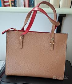 Vendo borsa donna beige come nuova con cerniera interna e fodera rossa