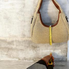 Borsa da donna nuova, dal design elegante e versatile, perfetta per primavera/estate ma facile da abbinare anche tutti i giorni. Modello compatto ma comodo, con finitura intrecciata effetto naturale e dettagli marroni che la rendono molto raffinata. Si porta comodamente a spalla ed è dotata anche di attacchi per tracolla. L’interno è foderato e pratica da usare, ideale per avere con sé l’essenziale in modo ordinato. 📏 Dimensioni: 14 x 28 cm 🎨 Colore: beige con dettagli marroni 📸 Il colore reale è quello rappresentato nella prima foto Dettagli: modello elegante e leggero interno foderato attacchi per tracolla stile perfetto per outfit casual o più curati Nuova. Per info scrivimi pure 😊