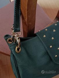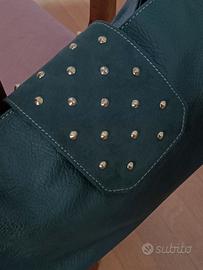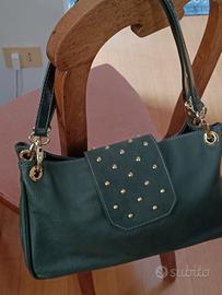 Borsa donna manici lucidi staccabili chiusura con borchie colore oro