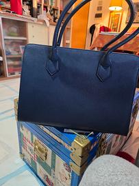Borsa blu (è un regalo) molto capiente. mai usata perche non ho nulla di blu. misure cm 35 x 16 x h 25. borsa rigida. i manici essendo stata dentro scatola sembrano storti. ma con l uso si raggiungano. c è pure tracolla. prezzo trattabile