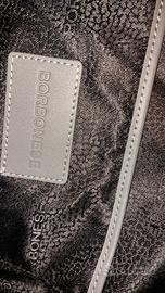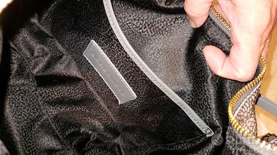 Borsa a spalla donna Borbonese Fold Hobo Medium tessuto tipo raso stampa tipica del marchio colore grigio-beige.