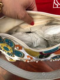 Vendo borsa donna Braccialini originale. Ben tenuta ma con piccole macchie nella parte dietro dato il tessuto molto chiaro (in raso bianco).
