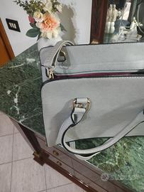 Vendo questa borsa per donna in pelle di colore grigio alla moda, in perfette condizioni, mai indossata, senza difetti e quindi nuova. La borsa è bellissima e molto elegante, adatta per qualsiasi tipo di evento e situazione. Qualità del prodotto eccellente.