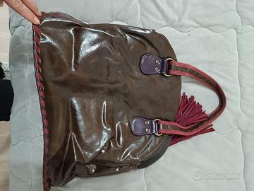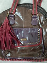 borsa donna a spalla, marchio Carpisa, bicolore viola e marrone,multi cerniera e multi tasche, ottime condizioni