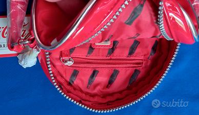 Vendo borsa a tracolla Coca Cola by Carpisa, cm. 18 di diametro e larga cm 5, colori bianco e rosso, tasca interna, tracolla regolabile, nuova (materiale da imballo ancora presente). Nel 2005 Carpisa ha festeggiato i 100 anni dell’iconica bottiglia in vetro Coca-Cola con una linea originale di zaini, sacche, postine, necessaire, shopping e valige. Non facile da reperire, possibile spedizione €10