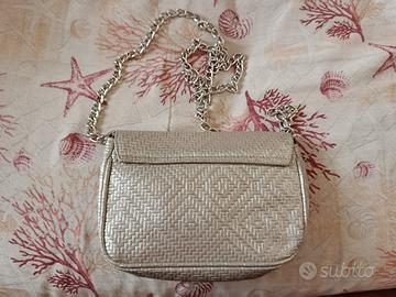 Vendo Borsa Donna Pochette di colore grigio con forme geometriche con la tracolla in catenella in eccellenti condizioni