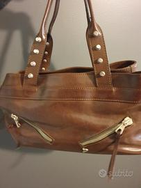 Vendo borsa da donna DONDUP usata ma in buono stato, in pelle marrone con zip e borchei colore argento, come da foto