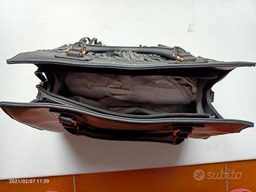 Bella, nera e assai capiente possiede molte piccole rifiniture color oro con un manico manegevole ed ergonomico al trasporto per la città, il lavoro o il tempo libero.