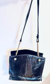 Borsa Donna Elissa blu di pitone vintage, dotata di tracolla in pelle e catena dorata.