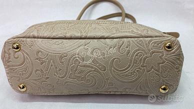 Borsa donna Etro Milano made in Italy, colore bianco e beige, dimensioni 43/30x12x30 cm, completa di lucchetto con chiave e dustbag. Articolo usato, con imperfezioni come visibile in foto.