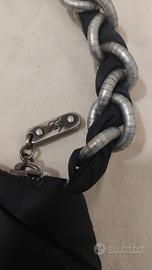 Borsa in raso nero,con manico intrecciato.