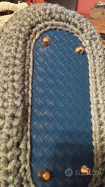 borsa lavorazione artigianale in cotone,manico e fondo in ecopelle intrecciato...fodera in jeans...charms da borsa o da cellulare in pietre dure