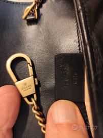 Borsa donna Gucci GG Marmont Mini in pelle nera con tracolla a catena