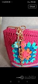 tracolla catena dorata interno con due taschine una con zip realizzazione uncinetto