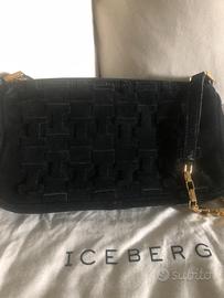 Borsa a tracolla Iceberg donna di colore nero in velluto con tracolla in metallo color oro Non presenta difetti per usura Misure cm 28x15