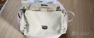 Borsa in pelle modello postina, prodotto artigianale, colore panna, misure 40x26x16, tracolla removibile, luce del manico 20 cm, 2 tasche interne con cerniera, oltre a tasca sul retro anch'essa con cerniera. Pari al nuovo.