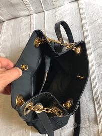 Borsa in tessuto trapuntato e inserto in pelle. Tasca interna e gancio di chiusura. Catene dorate