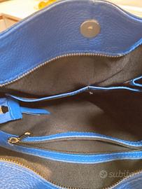 Elegante borsa donna in vera pelle martellata, dal colore blu intenso, raffinato e di grande impatto. Il design morbido e capiente la rende perfetta per l’uso quotidiano, unendo stile e praticità.
