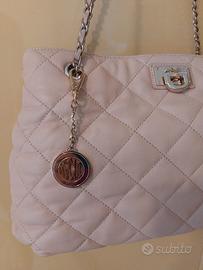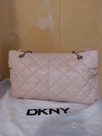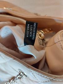 Borsa Donna Karan NY, vera pelle, tracolla metallo dorato con pelle intreccio, doppio scomparto aperto e zip centrale terzo scomparto, piedini di appoggio dorati