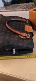 Borsa medie dimensioni in pelle marchio Kenzia con monogramma, colore nero e marrone. Interno formato da due tasche laterali aperte e una centrale chiusa con cerniera. Perfetta ed usata pochissimo. Base senza un segno di usura. Made in Italy.