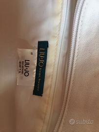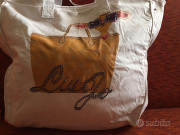 Borsa in canvas cotone bianca originale Liu Jo con strass, misure: 37 h x 43 larghezza con bottoni laterali per stingerla. Usata una sola volta.