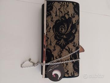 Pochette in tessuto -fiori dorati e neri in pizzo Michele Moon. Con etichette Mai usata Dimensioni cm: L 26. - h 16 - cm 6 Taschina interna