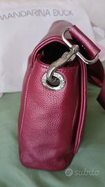 Borsa a tracolla Mandarina Duck Modello MD20 Lux misure L30xH24,5x W 8,5. Colore Rosso Borgogna (Shiny Sunset) in pelle dell'effetto perlescente con comoda tracolla regolabile, chiusura con patta, tasche zippate anche sul retro e vano cellulare. Completa di portachiavi con logo e sacchetto originale. Da portare a tracolla, a spalla o a mano. Mai indossata.