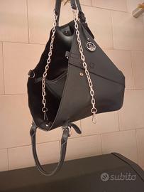 Borsa donna nera a tracolla con tracolla a catena materiale poliestere con borsellino interno con cerniera in ottime condizioni usata pochissimo... come da foto.