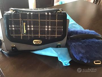 Borsa donna brand numero 22 con base e copertura intercambiabile. A corpo fisso fucsia esterno grigio. Due coperture una in pelo blu elettrico una più sobria grigio e bianco. Con tracolla a misura modificabile. Usata pochissimo seconda copertura ancora con etichetta