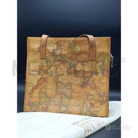BORSA DONNA P CLASSEMARTINI 1 CLASSE IN TESSUTO GEO CLASSIC. PRESENTA LA CELEBRE STAMPA A MAPPA GEOGRAFICA ELEGANTI MANICI IN PELLE E CHIUSURA ZIP.