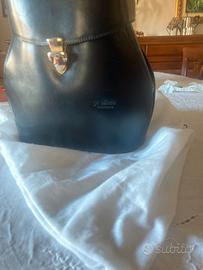 Borsa in vera pelle, nera, magnifico modello, interno fodera firmata A. Valentino
