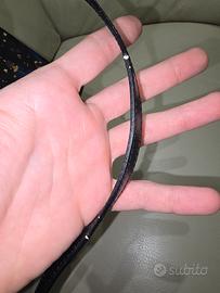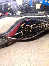Misure: 30x26x15,presenta un imperfezione nel manico lungo(vedere foto) e delle macchiette nel fondo del tessuto interno(vedere foto)