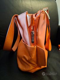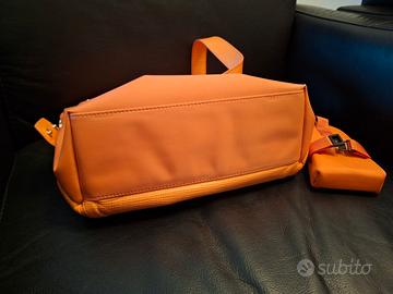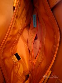 Splendida borsa donna PIQUADRO originale, modello vintage, colore arancione, tenuta in maniera perfetta. Ha una infinità di tasche e regolazioni. Cinghia accorciabile con moschettone brevettato PIQUADRO e inoltre in dotazione borsetta, sempre originale, da poter utilizzare singolarmente o attaccare con il suo gancio all’interno, utile per telefonino, occhiali o altro. Dimensioni L30xH25xP12. Vendo a 55 euro trattabili.