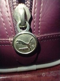 Vendo piccola borsa donna marca Puma originale, spaziosa con grande tasca interna, maniglie rigide, fondo con piedini, in ottimo stato. Forma trapezioidale, lunghezza base cm. 22, grande apertura con cerniera.