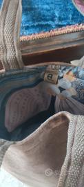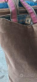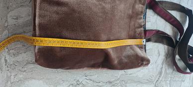 borsa shopper in velluto colore tabacco con fodera fantasia, unica nel suo genere fatta in laboratorio sartoriale, ottimo tessuto di qualità, nuova modello esclusivo.
