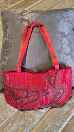Borsa donna elegante colore rosso lavorazione con perline, misure cm 33x22
