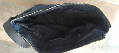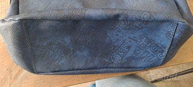 Borsa The Bridge blu, chiusura con cerniera, 1 tasca interna con cerniera e due taschine aperte . Dimensioni: cm 10,5 alla base, largh. cm 40,5, h. cm 29.
