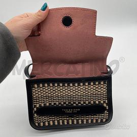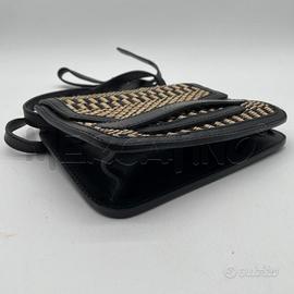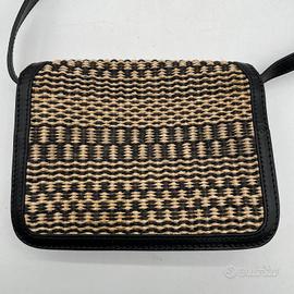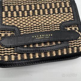 BORSA DONNA THE BRIDGE ECRU/NERO EFF VIMINI BORDI NERO PELLE OTTIME CONDIZIONI CON DUSTYBAG 21 X 15 X 6 CM