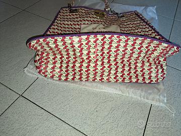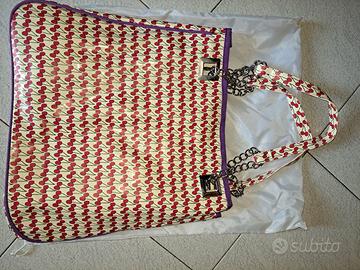 "LE PANDORINE" vintage, capiente dim. cm 38x38xx15, in plastica con bordi in tessuto, manici anche con catena, mai usata