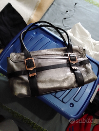 Borsa donna Tosca Blu, ampia, color canna di fucile, in pelle.