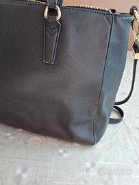 Borsa nera con manici e tracolla Trussardi. Chiusura lampo con tasca e vani interni. Dettagli oro