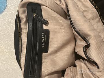 Borsa da donna marca twinset in ottime condizioni,colore nero con fiore bianco,come da foto,misure 35 × 42 manici 31 cm ,profondità 14 cm,molto capiente ,spedizione disponibile