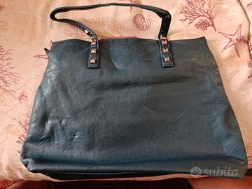 Borsa donna in vera pelle di colore blu in condizioni eccellenti (pari al nuovo)