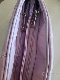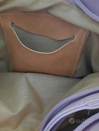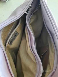 Bellissima borsa in vera pelle morbida color lilla. 2 taschine esterne, 2 grandi e 2 piccole interne. Larghezza 32 cm, altezza 20-22 cm. Brand Nardini.