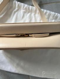 Borsa donna Victoria Beckham, modello rigido color avorio, 100% pelle